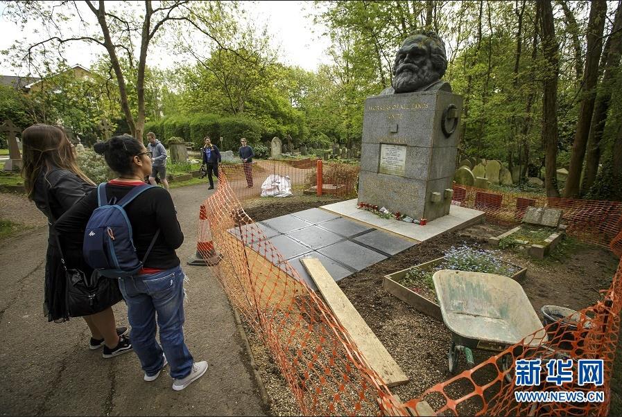 歷史長河奔流不息,真理之光穿越時空。1818年5月5日,德國小城特里爾,一代偉人馬克思誕生。200年后,世界東方。高擎馬克思主義的精神火炬,在習近平新時代中國特色社會主義思想指引下,中國共產黨正領導億萬人民書寫人類發展史上新的奇跡。這是2018年5月3日,在英國倫敦北部海格特公墓,人們來到正在進行維修的馬克思墓前參觀。新華社發(蒂姆·愛爾蘭攝)