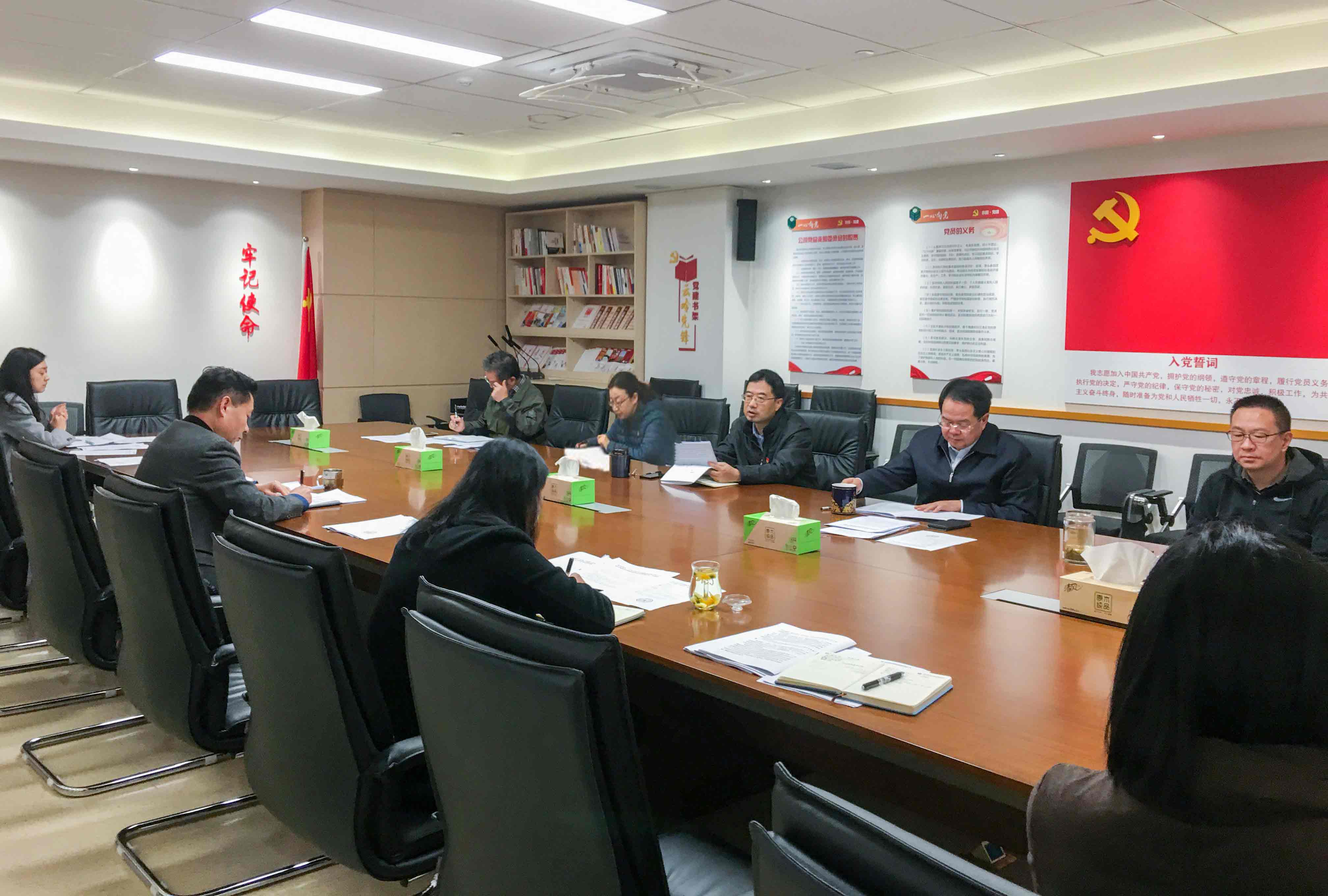 11月3日,云南省農業融資擔保有限公司黨總支部組織召開總支委(擴大)會議,傳達省財政廳黨組2020年第51次(擴大)會議要求,深入學習黨的十九屆五中全會精神,研究部署公司貫徹落實意見。會議由公司黨總支部書記、董事長郭影主持,支委及下屬3個黨支部書記參會。