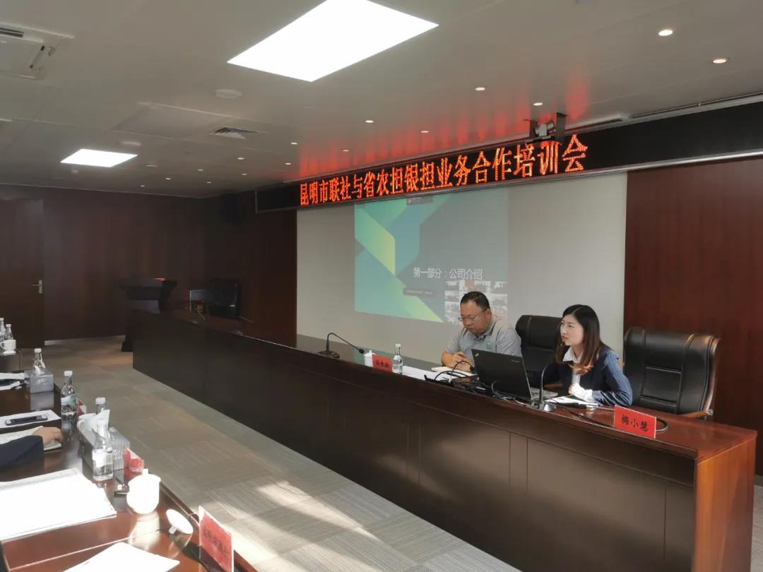 為進一步加深與昆明地區15家信用社/農商行合作,2020年11月18日農擔二部負責人張長浩攜昆明業務團隊到昆明市農村信用合作聯社參加“昆明市聯社與省農擔銀擔業務合作培訓會”,會議通過主分會場形式同時進行,主會場由昆明市聯社個金部全員、信貸管理部全員、宜良信用社、尋甸農商行、嵩明農商行相關領導及我公司人員參會,分會場由昆明市15家縣級聯社領導、信貸部全員、個金部全員以及各支行業務骨干通過視頻連線的方式參會。會議由市聯社個金部負責人尹夔主持。